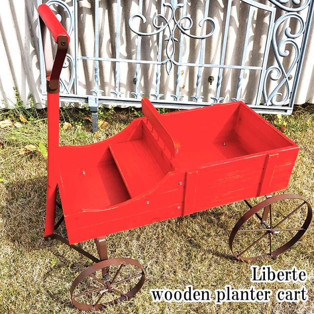 ウッデンプランターカート 可愛い リベルテ ガーデニング カート 花台 Liberte オーナメント アンティーク 庭 プランター