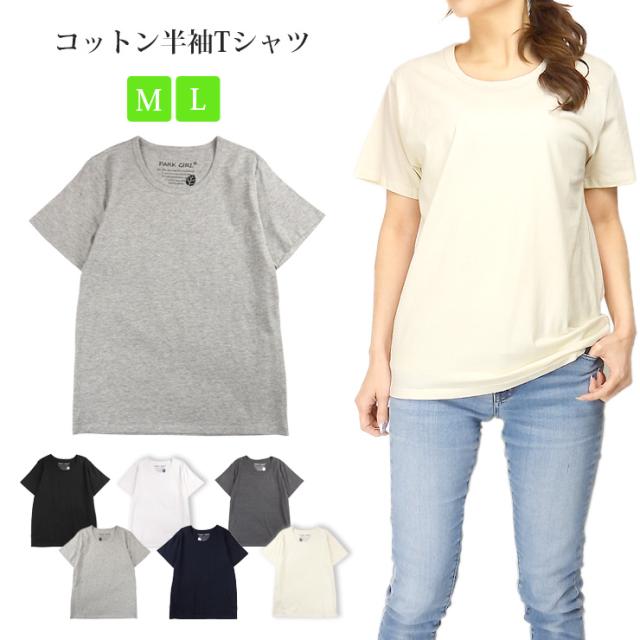 【メール便送料無料】半袖Tシャツ レディース 春 夏 秋 綿 全6色 M L 51183A シンプル 無地 カットソー ブラック ホワイト No.2523