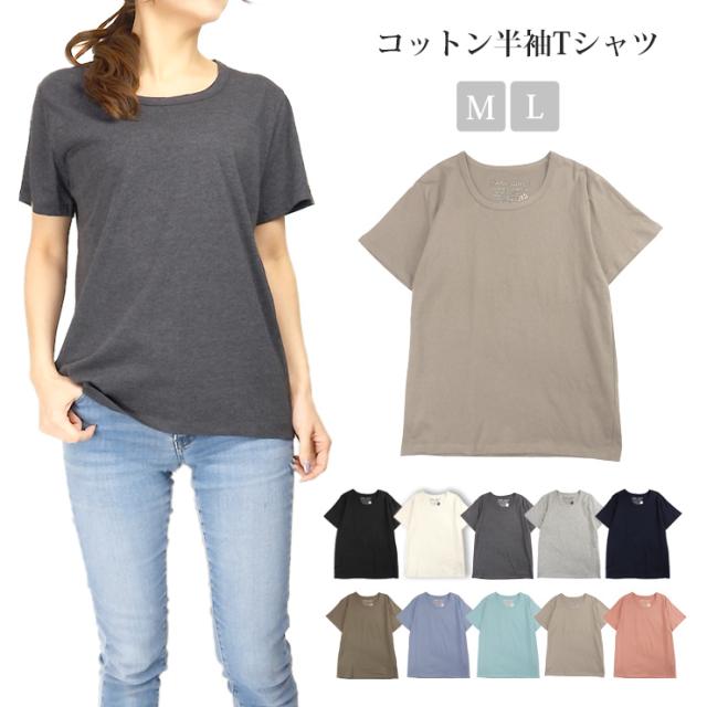 【メール便送料無料】半袖Tシャツ レディース 春 夏 秋 全10色 M L 51181 シンプル 無地 カットソー トップス ブラック ホワイト No.2520