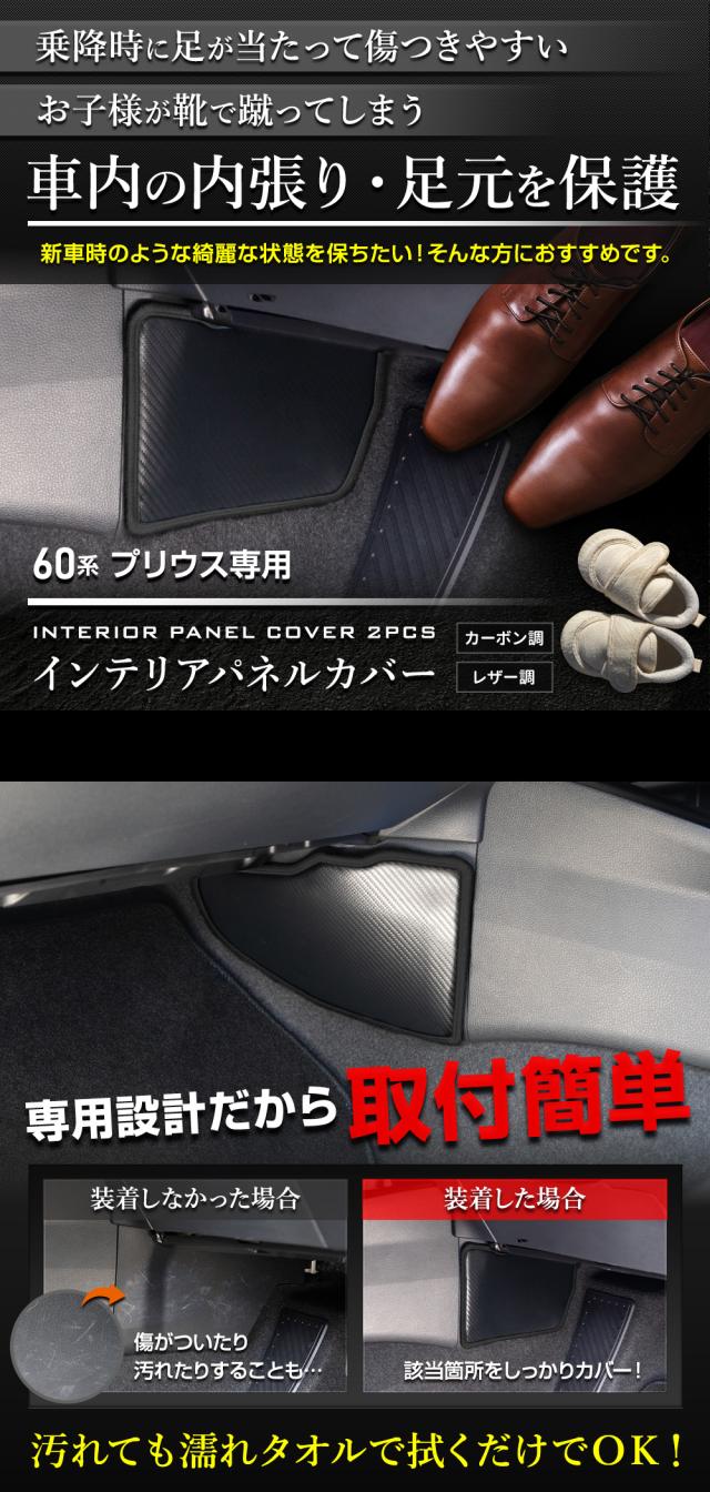 60系 プリウス 専用 インテリアパネルカバー 2PCS 選べる2タイプ キックガード デザイン PRIUSU 60 傷 汚れ 防止 保護 トヨタ [5]-2