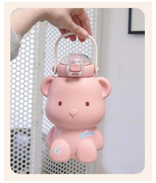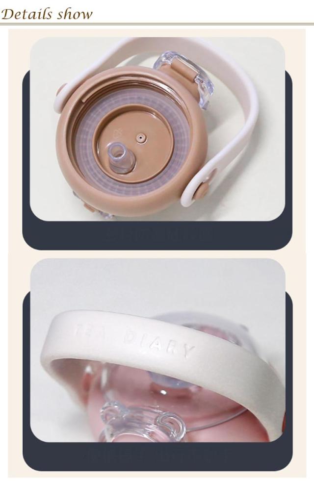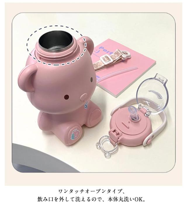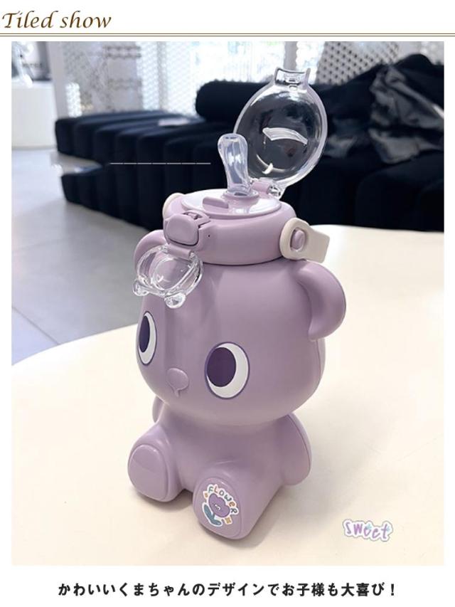 かわいいくまの水筒 キッズ ストロー コップ マグボトル 魔法瓶 ストローマグ ストロー付き水筒 ステンレス ワンタッチ ベビー 子供 ストラップ付 おしゃれ かわいい スポーツボトル こども 子供用 幼稚園 パープル ピンク ホワイト ブラウン