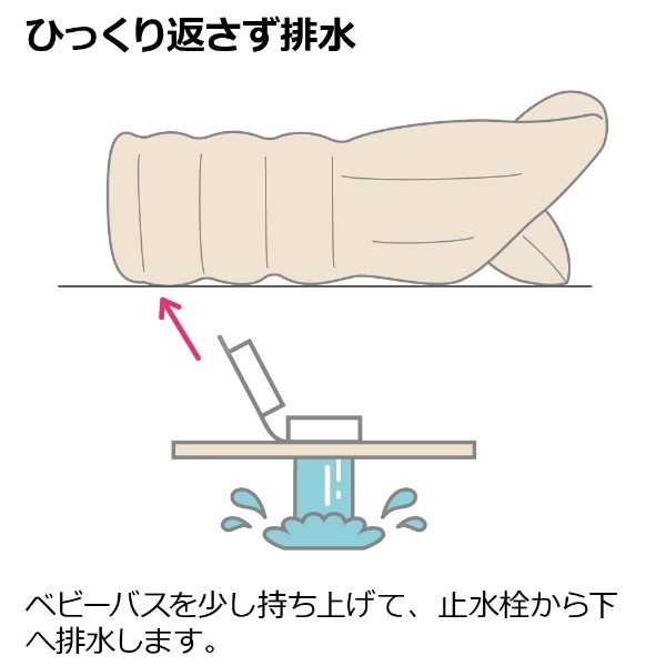 ベビーバスを少し持ち上げて、止水栓から下へ排水します。