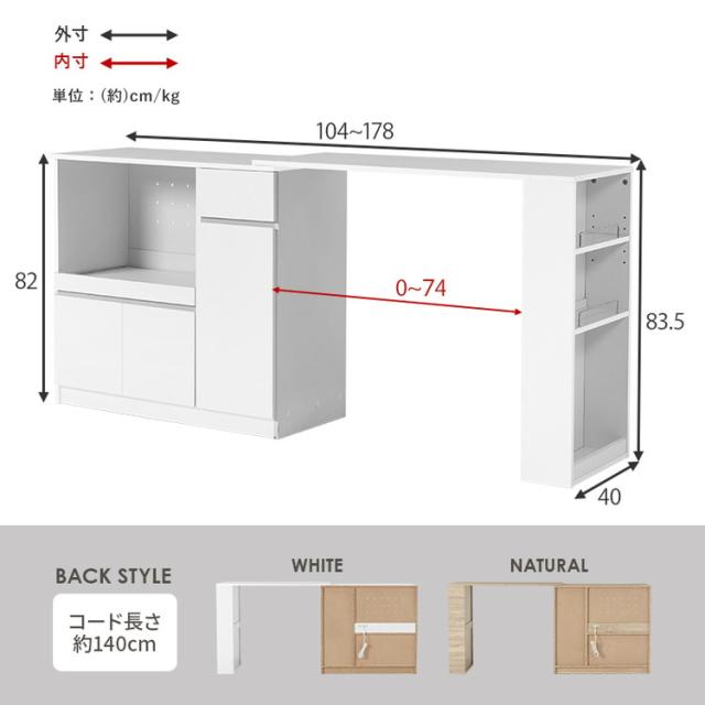(約)幅104〜178×奥行40×高さ83.5cm