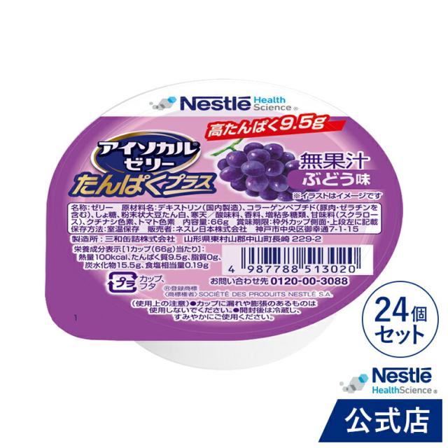 アイソカル ゼリー たんぱくプラス ぶどう味 66g × 24個セット 【ネスレ ゼリー デザート カップゼリー タンパク質 たんぱく質 健康食品 介護 介護食 栄養 栄養補助食品】