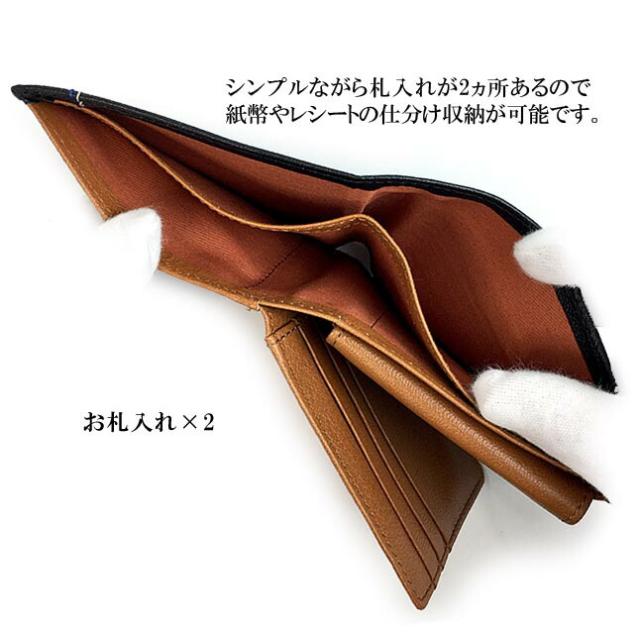 メイン札入れ部分は便利な2層式。お札を分けて収納可能です。