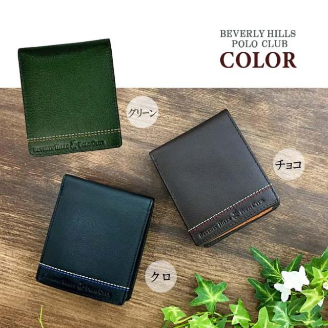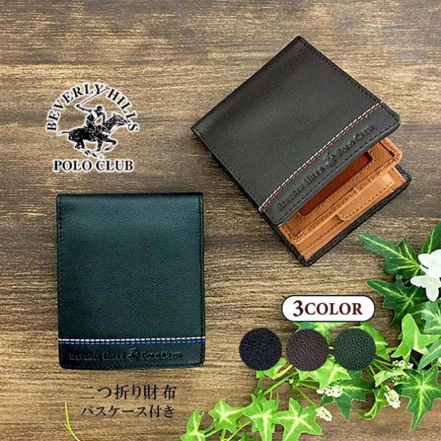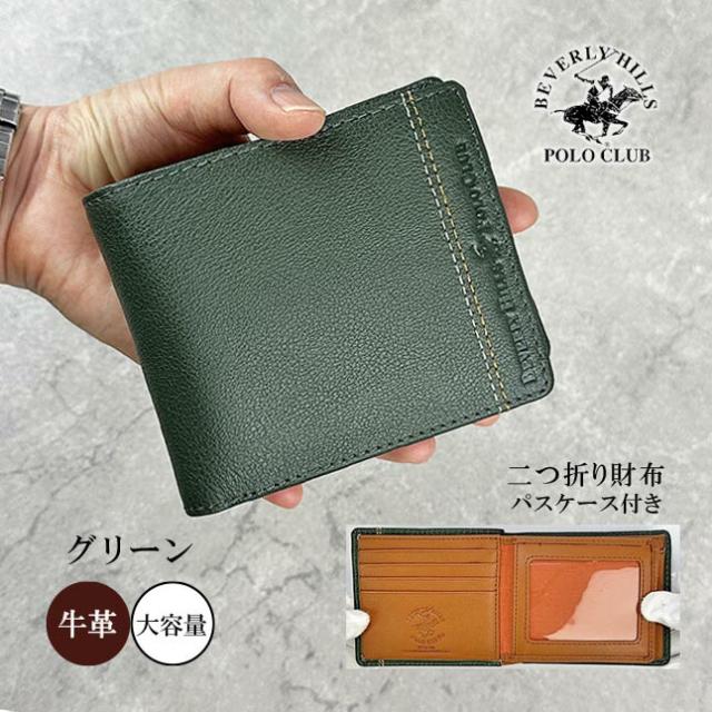 財布 メンズ 二つ折り 牛革 61b403 BEVERLY HILLS POLO CLUB ビバリーヒルズ ポロクラブ 二つ折り財布 中ベラ付き 小銭入れ 定期入れ付き 本革 レザー 人気 おすすめ 黒 茶 緑 ブラック ブラウン 30代 40代 50代 60代 ギフト プレゼント 紳士 父の日 誕生日 敬老の日