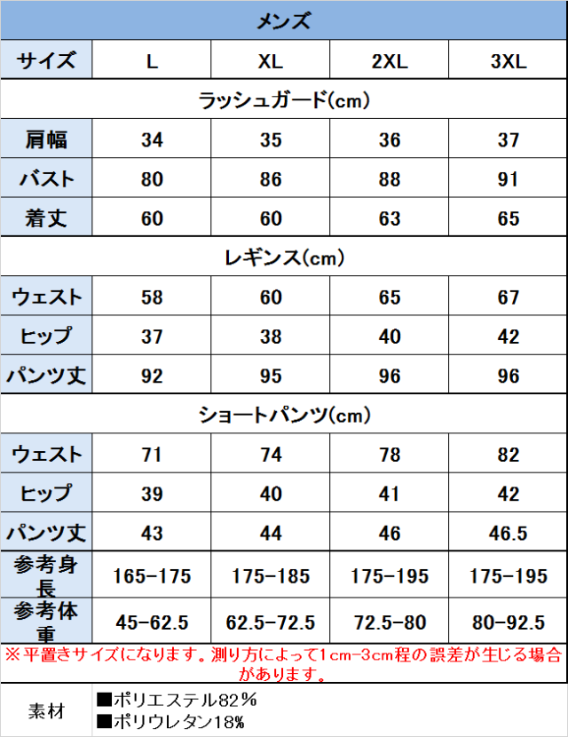 メンズ3点セット:ラッシュガード+ショートパンツ+レギンス