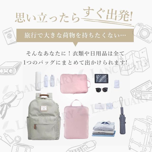 旅行で大きな荷物を持ちたくない…そんなあなたに!衣類や日用品は全て1つのバッグにまとめて出かけられます!