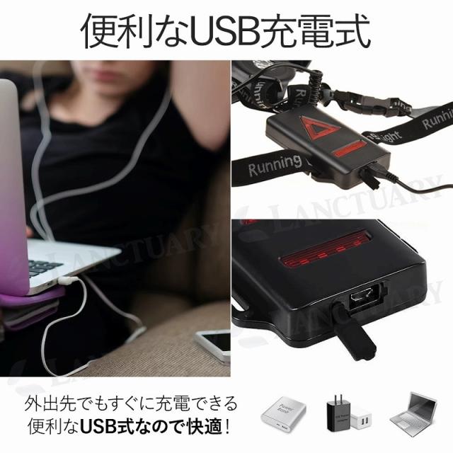 送料無料 LED ランニング アウトドア USB 軽量 夜間 明るい 防水