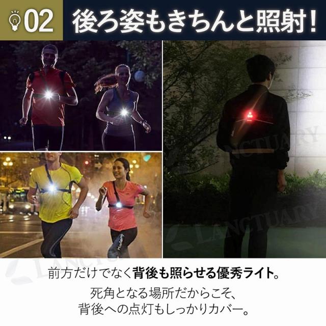 LED ランニングライト ジョギング 夜間 USB充電 IPX4防水 警告灯 サイズ調整 男女兼用 散歩 メンズ レディース アウトドア キャンプ 安全 軽量 人気 おすすめ agesugi_ska