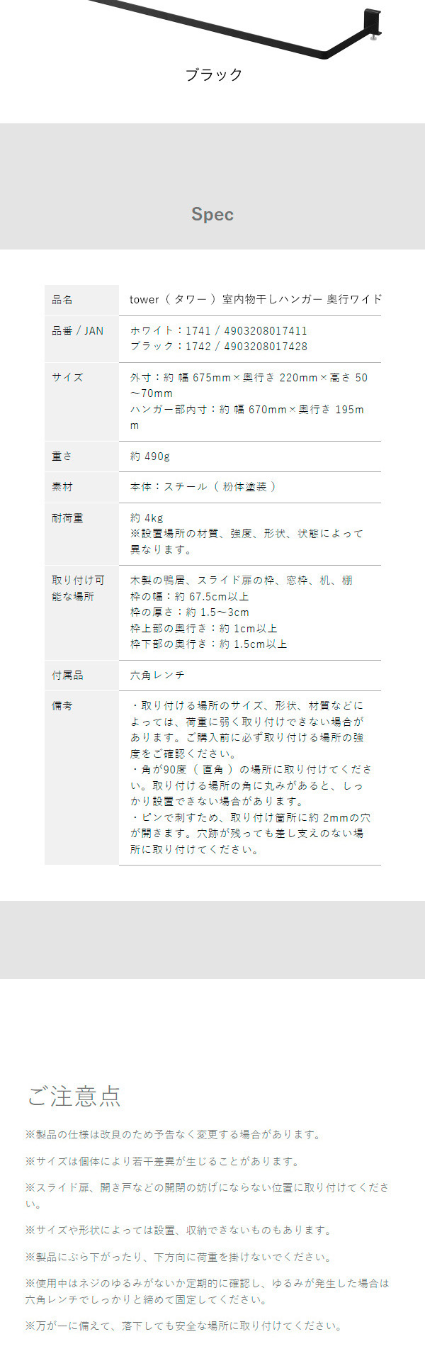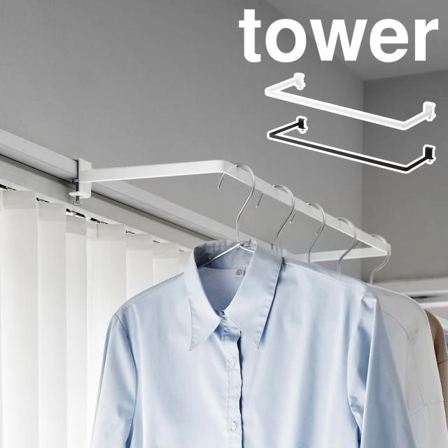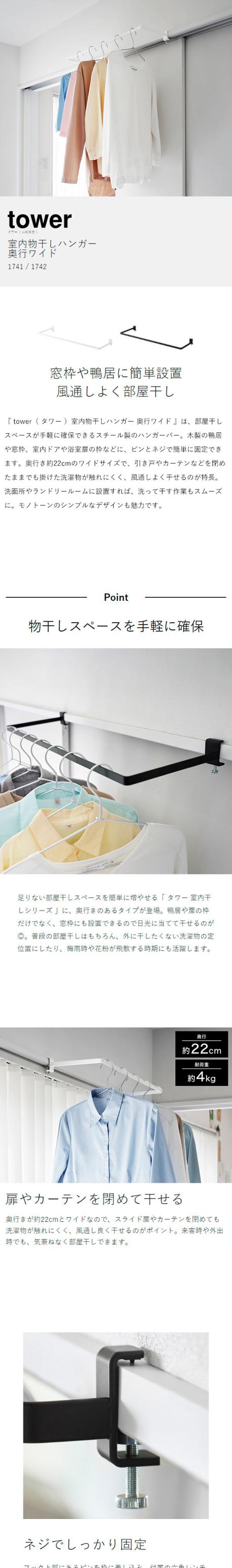 [ 室内物干しハンガー タワー 奥行ワイド ]山崎実業 tower 物干し竿 室内 部屋干し 洗濯物干し 窓枠 鴨居 室内物干しハンガー ランドリー 洗面所 洗濯物 お風呂場 衣類収納 北欧 梅雨 おしゃれ yamazaki 公式 モノトーン ブラック ホワイト 1741 1742