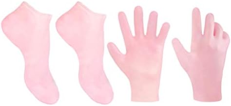 HEALLILY 保湿手袋と靴下1セットシリコンジェルスパ手袋カルスリムーバーソックスフットケアソックスビューティーハンドミットサイズm(ピンク)