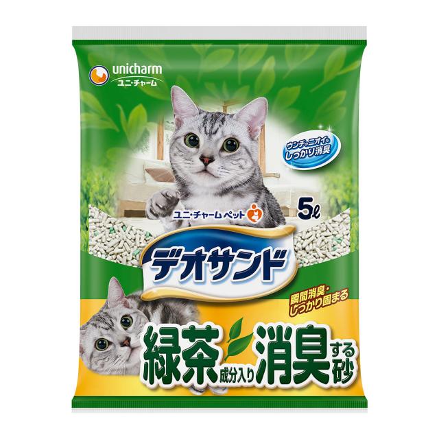 ユニ・チャーム デオサンド 緑茶成分入り消臭する砂 5L 猫用品 ねこグッズ ペットグッズ ペット用品 猫砂