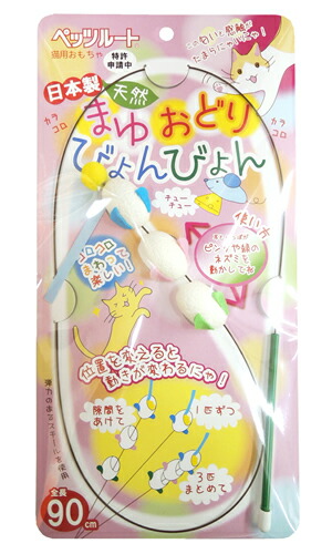 ねこじゃらし ペッツルート まゆおどり びょんびょん 動物性天然繊維シルク100%のまゆを使用したワイヤータイプのおもちゃです。猫ちゃんが好きな天然まゆの匂いや感触で狩猟本能を刺激!3匹のネズミの位置を変えていろいろな動きを試せます。
