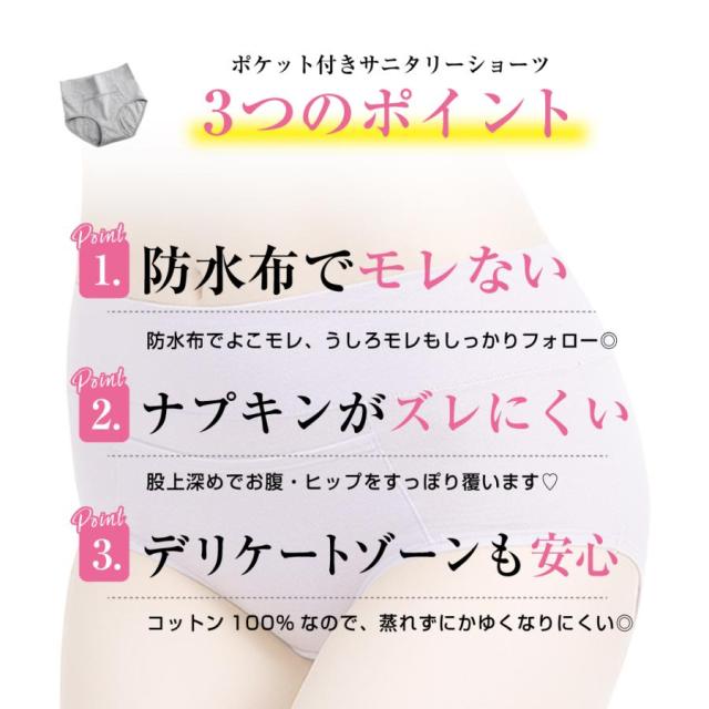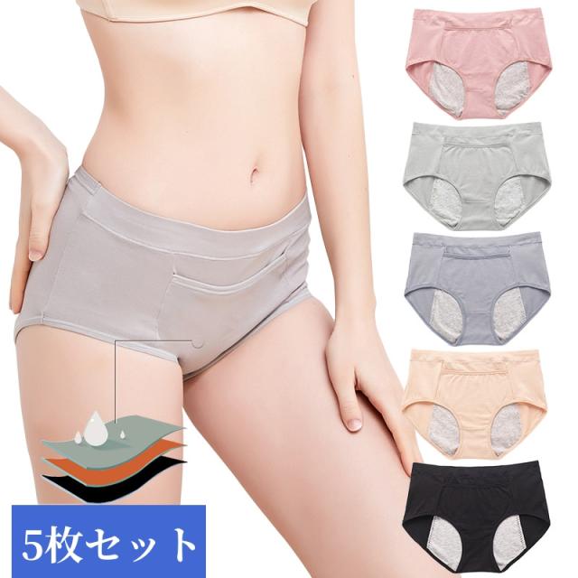 [5枚セット]サニタリーショーツ 生理用ショーツ 生理用下着 ポケット付き 防水