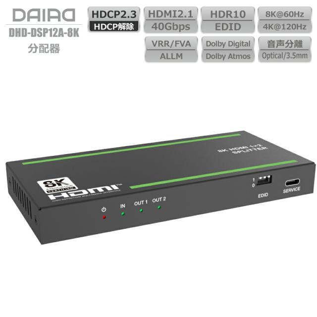 分配 音声分離 HDCP解除 DAIAD HDMI スプリッター 光デジタル出力 HDCP2.3 4K120Hz VRR ALLM HDMI2.1 分配器 HDR EDID PS5 XBOX PC ブルーレイレコーダー 同時出力 画面複製 液晶テレビ モニター ディスプレイ Dolby Atmos 120Fps ゲーミング 4K 1080P 下位互換