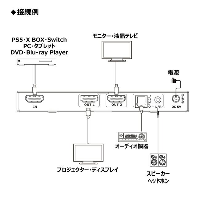 | 出力 | HDMI×2 OPTICAL×1 L/R×1 (3.5mmステレオミニジャック) |