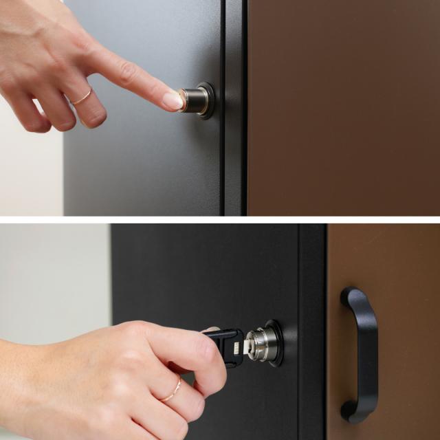 上部のポスト部分にはカギが不要のダイヤル錠、下部の宅配ボックスには押すだけで簡単に施錠できるプッシュキーが付いています。