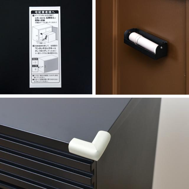 宅配ボックスの角に取り付けできるコーナークッションが付属しています。