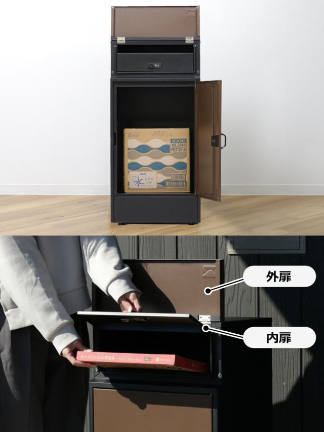宅配ボックス リシムフロントD 大容量 一戸建て用 ( 郵便ポスト 2段 宅配BOX 戸建 屋外 ポスト メール便 宅配便 ポスト一体型 防水 二重扉 台座付き スタンドポスト メールボックス 大型 対応 OK 鍵付 ペットボトル ケース 水 )