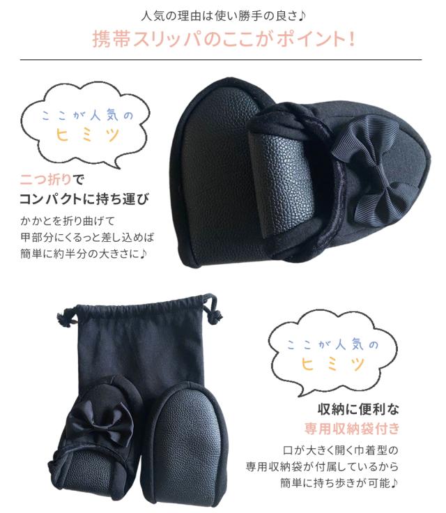 携帯スリッパ 折りたたみ 携帯シューズ かかと付き 黒 レディース メンズ 幼稚園 かわいい ルームシューズ パンプス オフィス 収納袋付き 室内履き 入学 リボン 無地 新学期 参観日 保護者会 上履き 海外旅行 飛行機 機内 出張