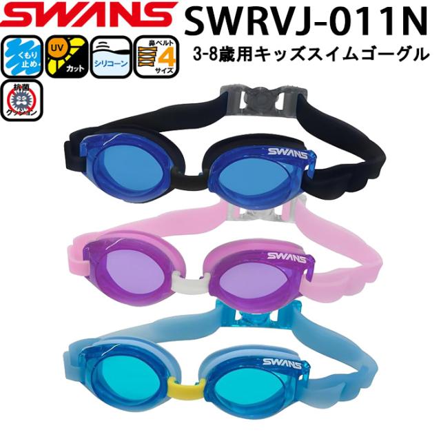 (パケット便200円可能) SWANS(スワンズ) キッズ用スイミングゴーグル 3歳〜8歳 くもり止め UVカット シリコーンクッション SWRVJ-011N