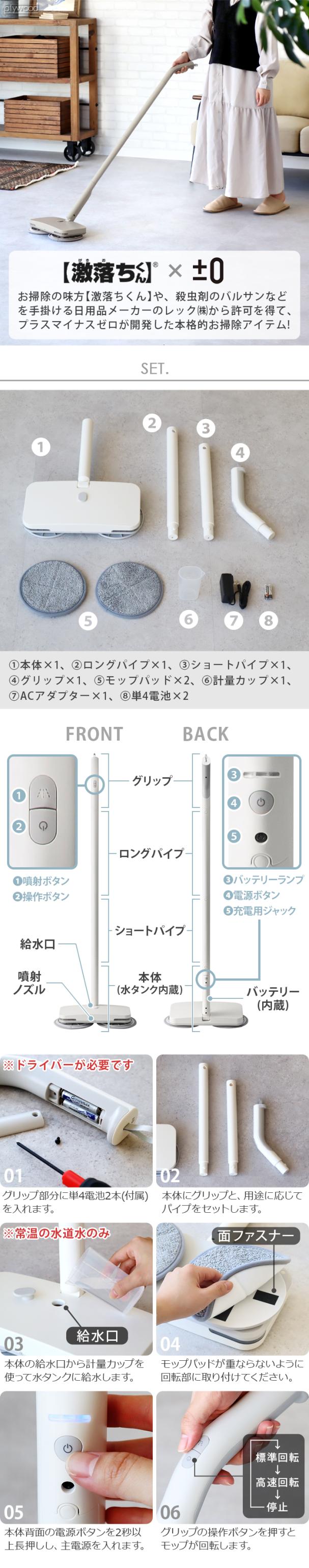 【選べる特典付】±0 【激落ちくん】 コードレス電動モップ XJM-H020 回転モップ 回転モップクリーナー 電動モップ 自走式 水拭き 乾拭き プラスマイナスゼロ プラマイゼロ モップクリーナー コードレス 充電式 1年保証 床掃除 掃除用品 おしゃれ【送料無料★P10倍】