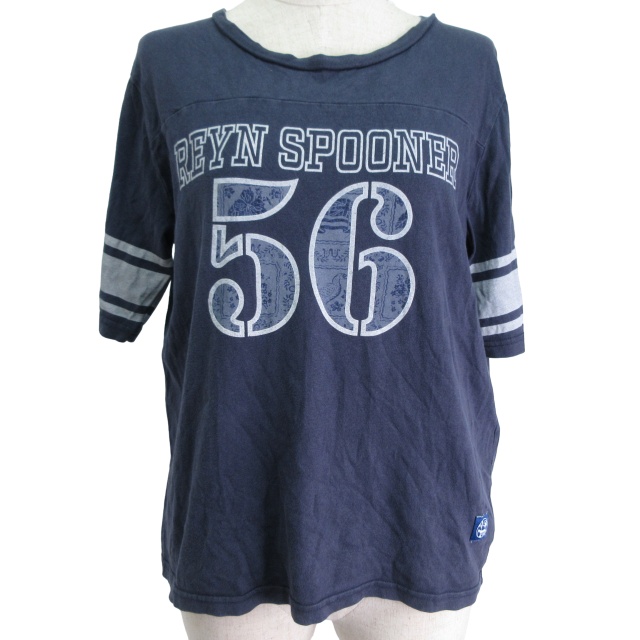 【中古】レインスプーナー reyn spooner Tシャツ 半袖 ロゴプリント ネイビー Lサイズ 0402 レディース
