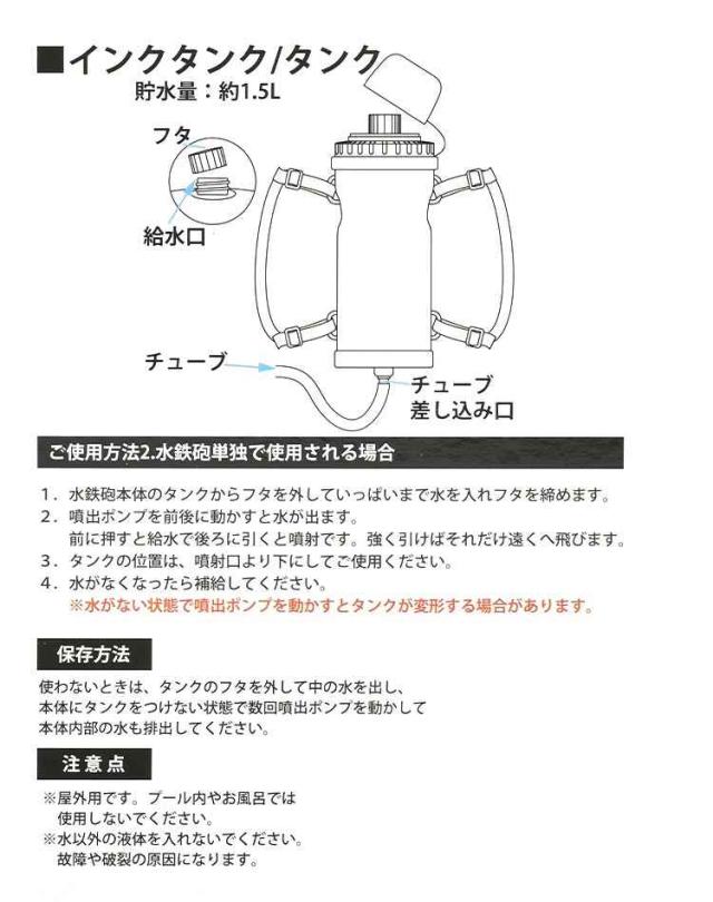 ※遊ぶ際には必ず水道水を使用してください。海水や泥水等を使用すると故障の原因になります。