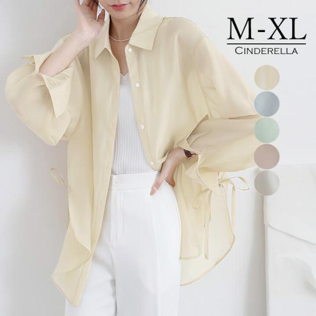 シアーシャツ レディース ブラウス カジュアル シースルー ゆったり 上品 ロング丈 ルーズ シャツゆったり シースルー シアー 透け感 ドロップショルダー 襟付き 襟シャツ カラーシャツ オフィスカジュアル チュニック丈 ナチュラル XL rt828