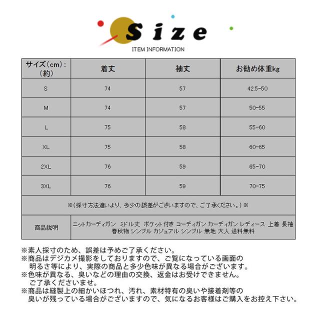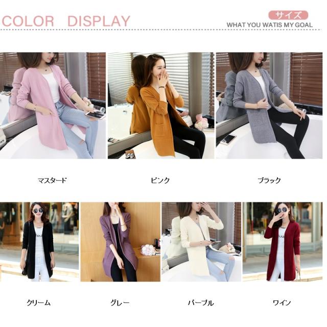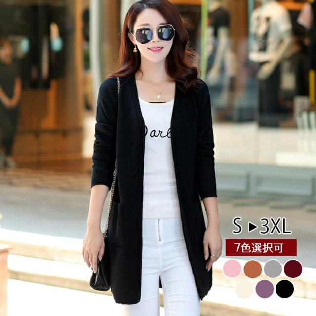 ニットカーディガン ニット ミドル丈 ポケット付き コーディガン カーディガン レディース 上着 長袖 春秋物 シンプル カジュアル シンプル 無地 大人 送料無料