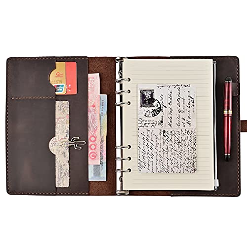 ROTERDON システム手帳 本革 ノートA5 サイズ スタンダード カバー レザー 手縫い 手作り オリジナル 3色 ノート メモ帳 カード収納 ビジ