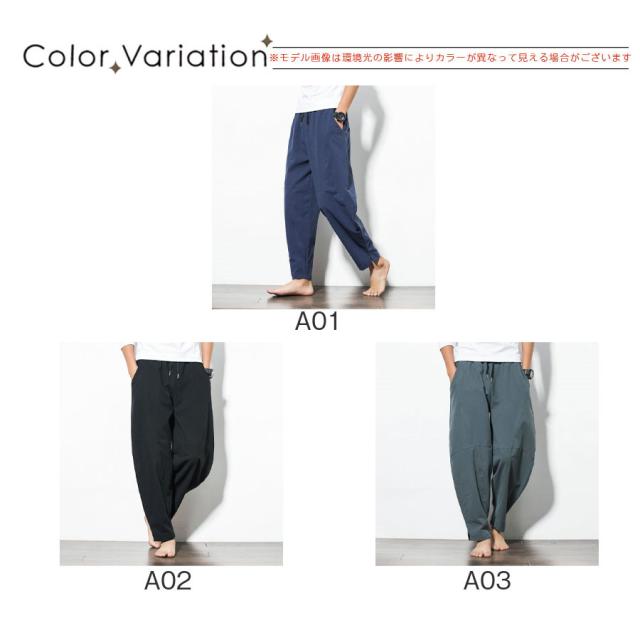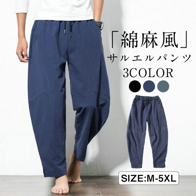 サルエルパンツ メンズ ワイドパンツ リネンパンツ イージーパンツ カジュアル 夏服 ガウチョパンツ 薄手 大きいサイズ 父の日