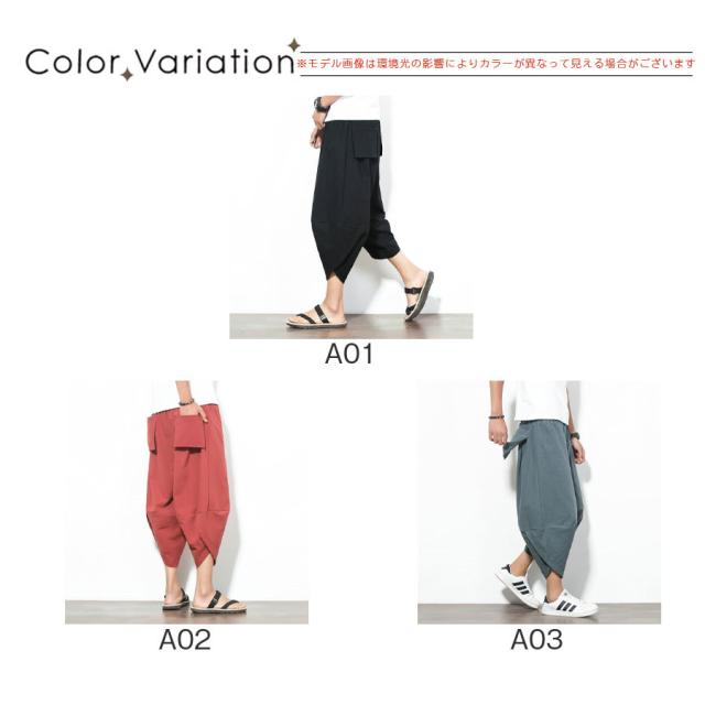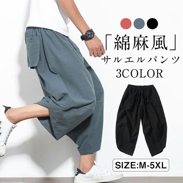 サルエルパンツ メンズ ワイドパンツ リネンパンツ イージーパンツ カジュアル 夏服 ガウチョパンツ 薄手 大きいサイズ 父の日