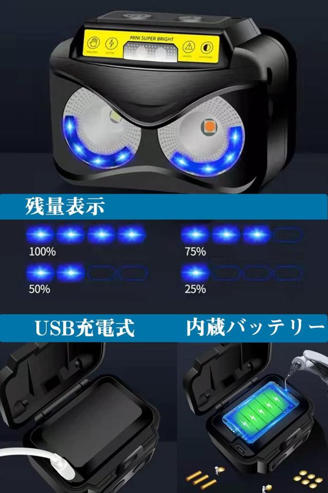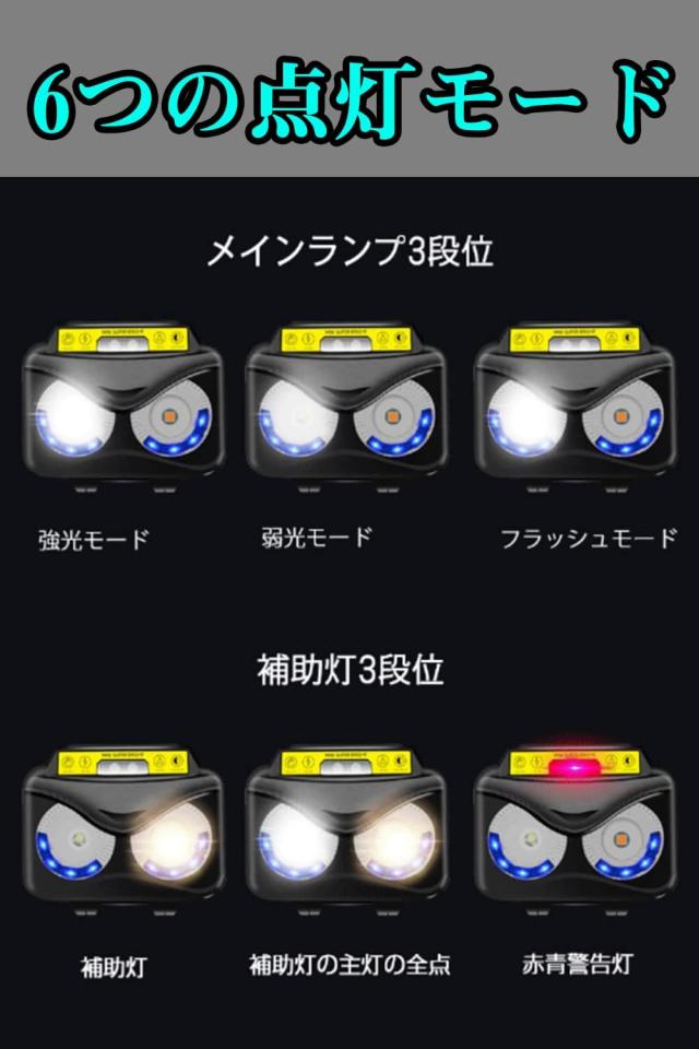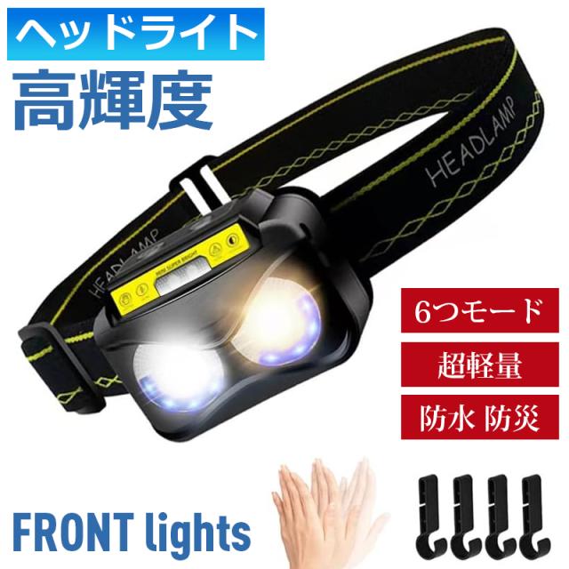 ヘッドライト 充電式 暖色&白LEDライト 6つモード usb 高輝度 超軽量 角度調整 ヘルメットライト 防水 防災 長時間使用 軽量 防水 防災 アウトドア PSE認証済み