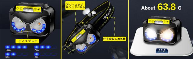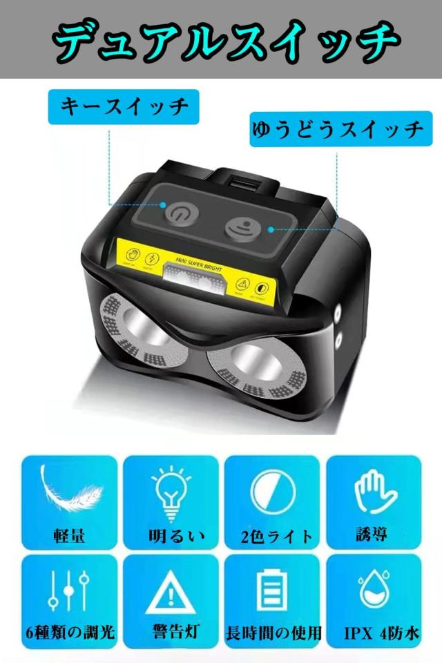 【6モード/センサー機能】合計6つの調光モードがあり、夜勤、釣り、キャンプ、停電などのアウトドア活動で簡単に対応できます。照明は必要に応じて白色光または暖光を選択でき、明るさも選択できます。ヘッドライトのセンサーは右側にあり、センサースイッチを入れた後、手を振るとオン/オフができるので、夜釣りやガレージでの作業にとても便利です。※メジャー採寸の為、サイズが多少異なる場合がございます。予めご了承ください。