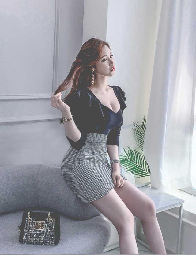 豪華 グレンチェック切り替えブラック長袖ドレス[ キャバドレス・小悪魔アゲハageha・パーティードレス]