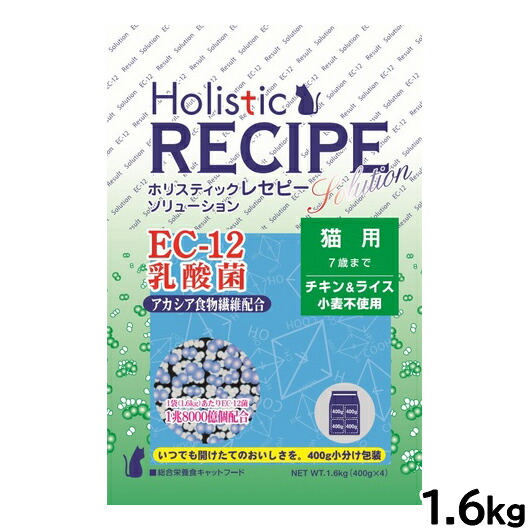 ホリスティックレセピー キャットフード ソリューション EC-12乳酸菌 チキン&ライス 猫用 1.6kg【送料無料】 無添加 日本専用フード 小分け