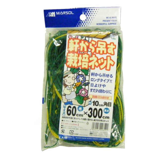 ◆商品名:マルソル(MARSOL) 軒から吊るす栽培ネット 10cm角目 60cm×300cm 緑色