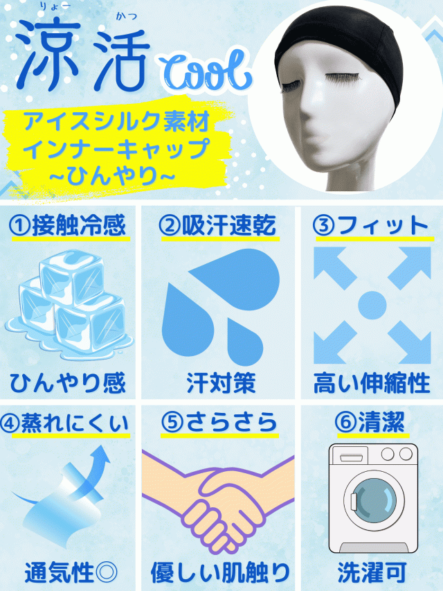 接触冷感 ウィッグキャップ ウィッグネット インナーキャップ 医療用 医療 フリーサイズ 滑り止め 痛くない 汗 蒸れにくい 冷感 ズレ防止 伸縮性 アンダーキャップ ひんやり ういっぐ ウイッグ 通気性 薄手 ケア用品 冷感 涼感ウィッグキャップ Luce brillare ルスブリラーレ