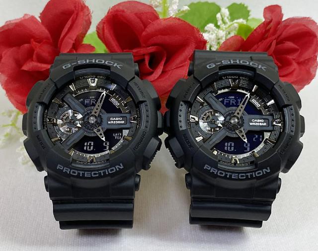 ペアウオッチ G-SHOCK Gショック メンズ ペア腕時計 カシオ 2本セット 双子コーデ GA-110-1BJF ラッピング無料 手書きのメッセージカードお付けいたします あす楽対応 クリスマス プレゼント 誕生日 御祝い還暦 銀婚式 結婚記念日 婚約