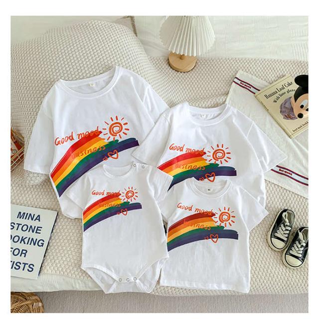 商品名:【短納期】親子ペアtシャツ ペアルック 子供tシャツ 親子tシャツ 親子セット 親子コーデ リンクコーデ レディースTシャツメンズTシャツ 半袖Tシャツ ロンパース 赤ちゃん ベビー服 子供服 大きいサイズ パパ ママ 男の子 女の子 赤ちゃん 夏 家族お揃い 家族コーデ 韓国子供服 海 旅行撮影 母の日 父の日 こどもの日 家族写真 誕生日 恋人 普段着 運動着 スポーツウェア 誕生日 プレゼント