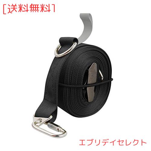 Keepjoy 小川張り タープ延長ベルト セッティングテープ ワンタッチ長さ調整 5.2m 耐荷重200kg 収納袋付き ブラック