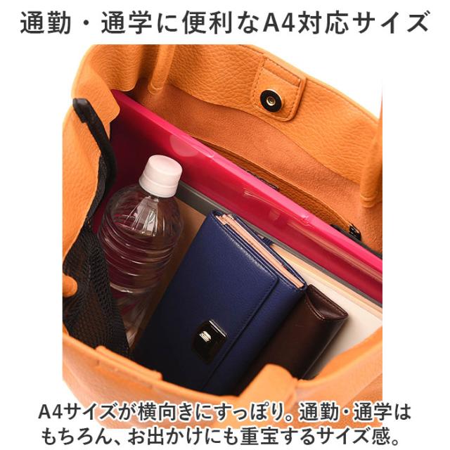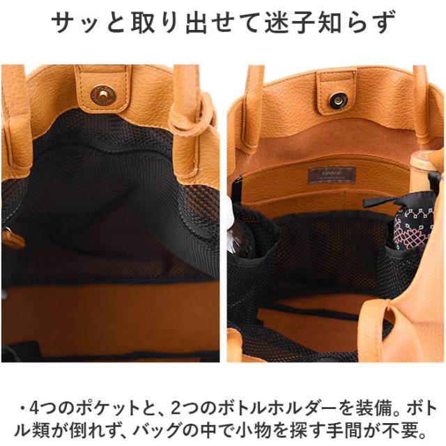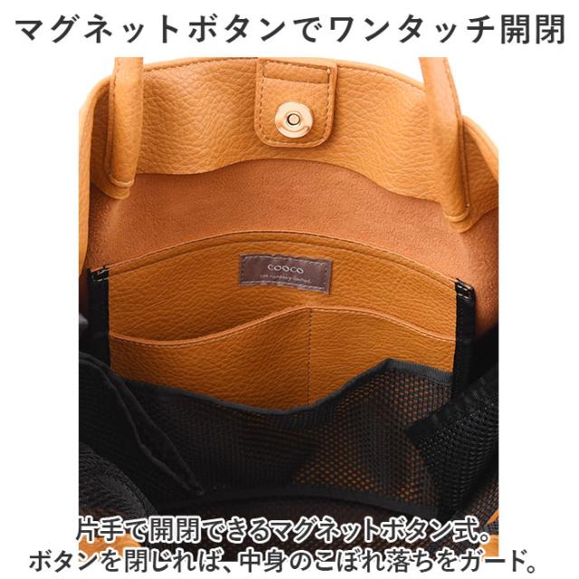 | 商品説明 | ・どんなコーデにもマッチ!オン・オフ問わず活躍する「COOCO チャーム付きトートバッグ」が新登場。 【使いやすく気軽に持てるトート】 ・ざっくり収納できて、すっきり持てるシルエット。軽量でサッと気軽に持ち出せて、お手入れも拭き取るだけ。 【マグネットボタンでワンタッチ開閉】 ・片手で開閉できるマグネットボタン式。ボタンを閉じれば、中身のこぼれ落ちをガード。 【通勤・通学に便利なA4対応サイズ】 ・A4サイズが横向きにすっぽり。通勤・通学はもちろん、お出かけにも重宝するサイズ感。 【サッと取り出せて迷子知らず】 ・4つのポケットと、2つのボトルホルダーを装備。ボトル類が倒れず、バッグの中で小物を探す手間が不要。 【季節や流行りを気にせず長く愛用◎】 ・年代やシーズン問わず使える、落ち着きのある仕上がり。取り外し可能なチャームがさりげないアクセント。 【ポケット仕様】 ・内側:ファスナー式メッシュポケット×1、メッシュポケット×1、オープンポケット×2、メッシュボトルホルダー×2 |