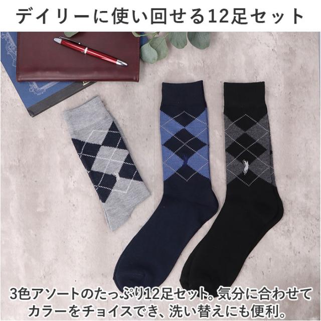 靴下 メンズ 12足組 通販 ソックス 靴した カジュアルソックス くつ下 紳士靴下 クルーソックス アーガイル 紳士用 メンズソックス セット おしゃれ 25〜27cm くつした オシャレ シンプル ブランド ポロ レッグウェア メンズアパレル