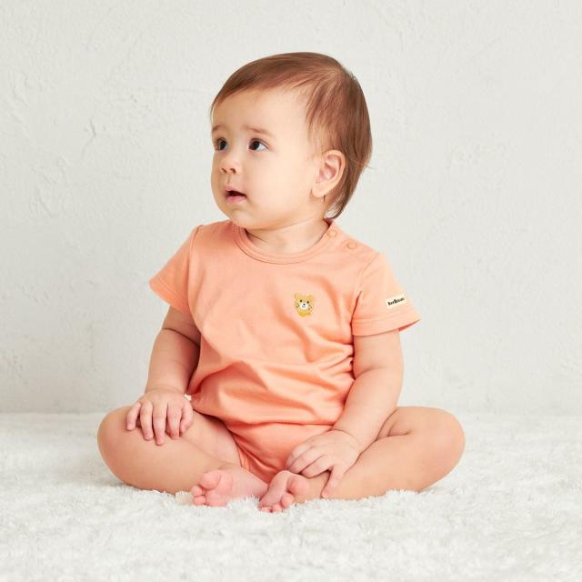 ミキハウス ホットビスケッツのワンポイント半袖ボディシャツ(ロンパース)。