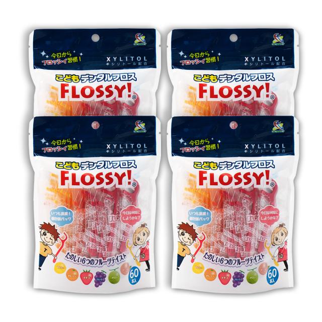 フロッシィ こどもデンタルフロス 60本 ×4個 キシリトール配合 個包装パック フロス 子供用