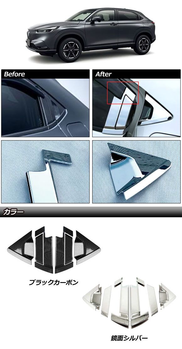 リアドアハンドルカバーセット ホンダ ヴェゼル RV系 2021年04月〜 ブラックカーボン ABS製 サイドバイザー有り車用 入数:1セット(6個) AP-XT2492-AB-BKC
