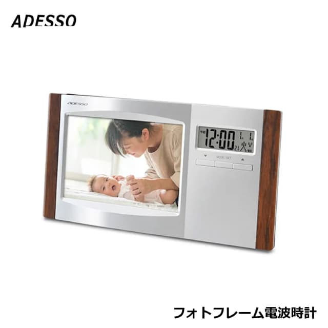 アデッソ フォトフレーム電波時計 日付表示 写真入れ フォトフレーム フォトクロック 置き時計 掛け時計 ADESSO MP-601 別料金にて名入れ対応可能