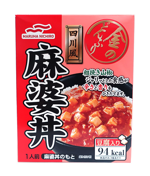 豆板醤・甜麺醤・豆鼓醤に粗挽きと山椒を合わせた、辛さと香りを味わう麻婆丼のもとです。